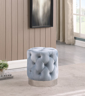 O-6159 Round Ottoman 14.7"Dia. x 17.5"Ht Blue Velvet