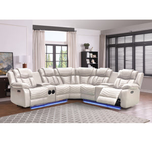ZENITH Sectional Power Recliner Bluetooth Speaker/LED/Storage Console/Beige