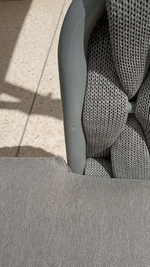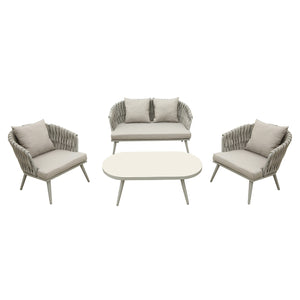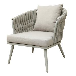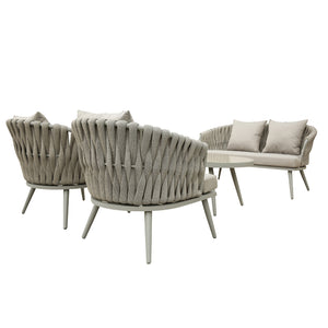 Finish: Synthetic All Weather Rope / Light Grey All weather Cushion / Light Grey Aluminum Frame / Grey Tempered Glass Top