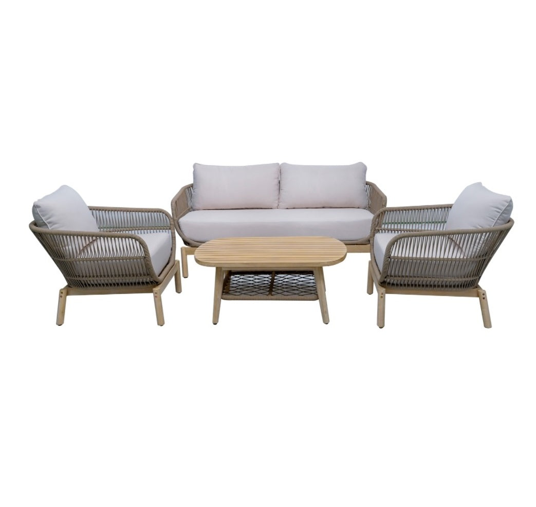 61007 4pcs Acacia Rope Lounge Set Aluminum/Natural/Beige Cushions