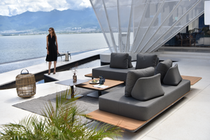 A391E New Freedom Sectional Set (2) 99"x 37"x 12" Powder Coated Aluminum + Pillow Dark Charcoal