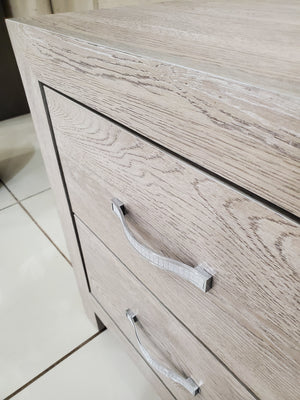 B9270 King Bed + Nightstand Pickled Oak Finish White Wood