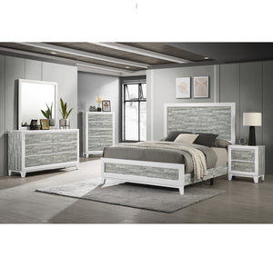 Bedroom Set Artic Queen + Dresser + Mirror + Nightstand Grey/White