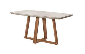 Bennet - Rectangular Dining Table 63"x35" (Off-White Gloss-Glass top/Natural Base) - 48094