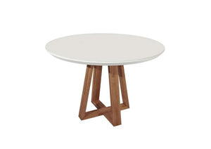 Bennet - Round Dining Table 45" Dia. (Off-White Gloss-Glass top/Natural Base) - 48095