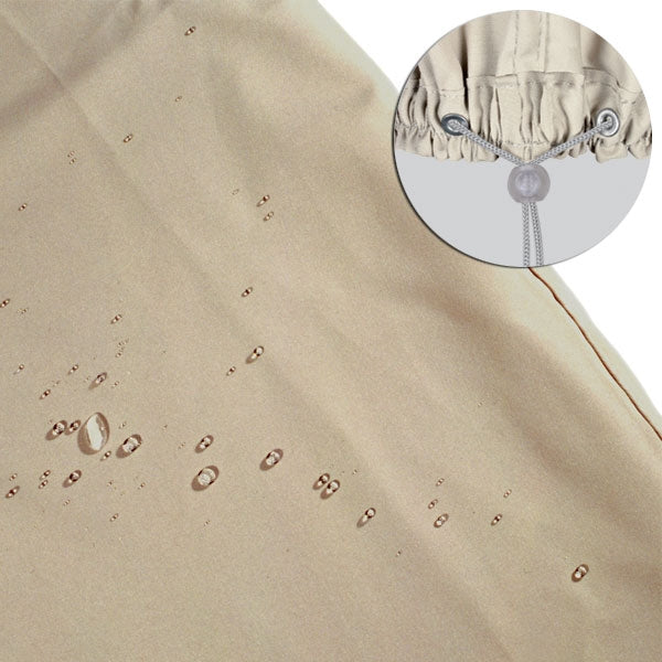 Made with RhinoWeave wich is a Canvas fabric that is made of 100% polyester, it is 600 denier, water resistant, durable, versatile and reliable. It's a very tough fabric, designed to be both durable and breathable. The fabric is also water resistant and will not crack or peel like vinyl covers do. The best thing about Rhinoweave is the softness of the fabric. It won't scratch the furniture underneath, keeping it protected all year long