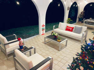Crystal Sofa Set - 3-Seater+(2)Lounge Chairs+Coffee Table (Brushed Alum/Grey Polywood/White Cushion)