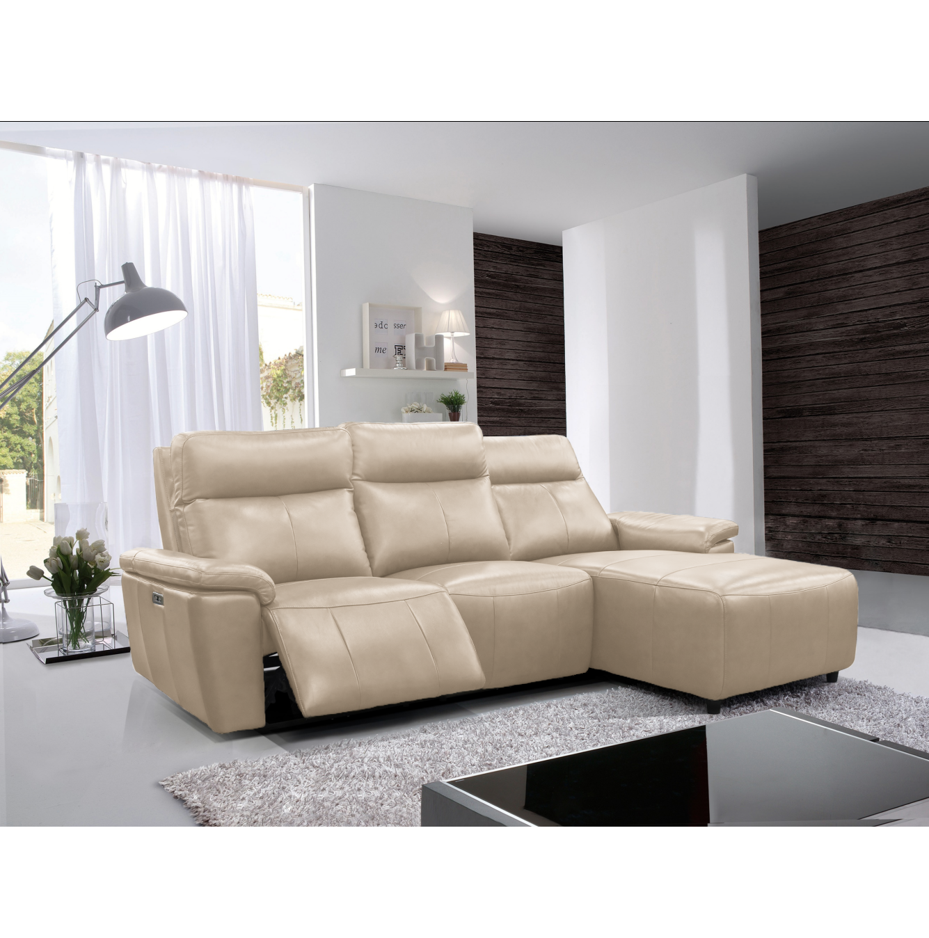 Daytona 3-Seater Power Recliner w/Chaise Right When Facing Leather Taupe