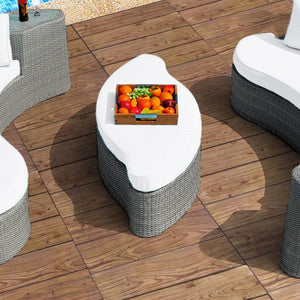 Ottoman made in Synthetic Wicker & White Cushion with removable cover, washing machine friendly.