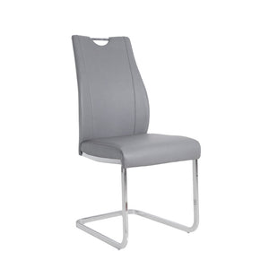 Dining Chair - Light Grey PU and Stainless Steel handle and base