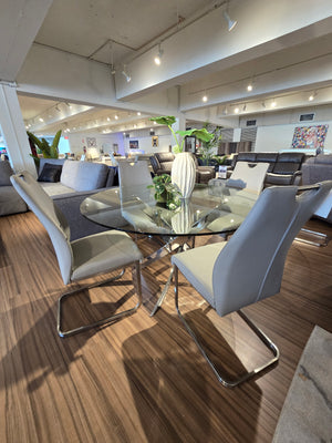 F2133 Round Dining Table + (4) HDS-5053 Dining Chair Grey
