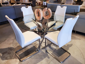 F2133 Round Dining Table + (4) HDS-5053 Dining Chair White
