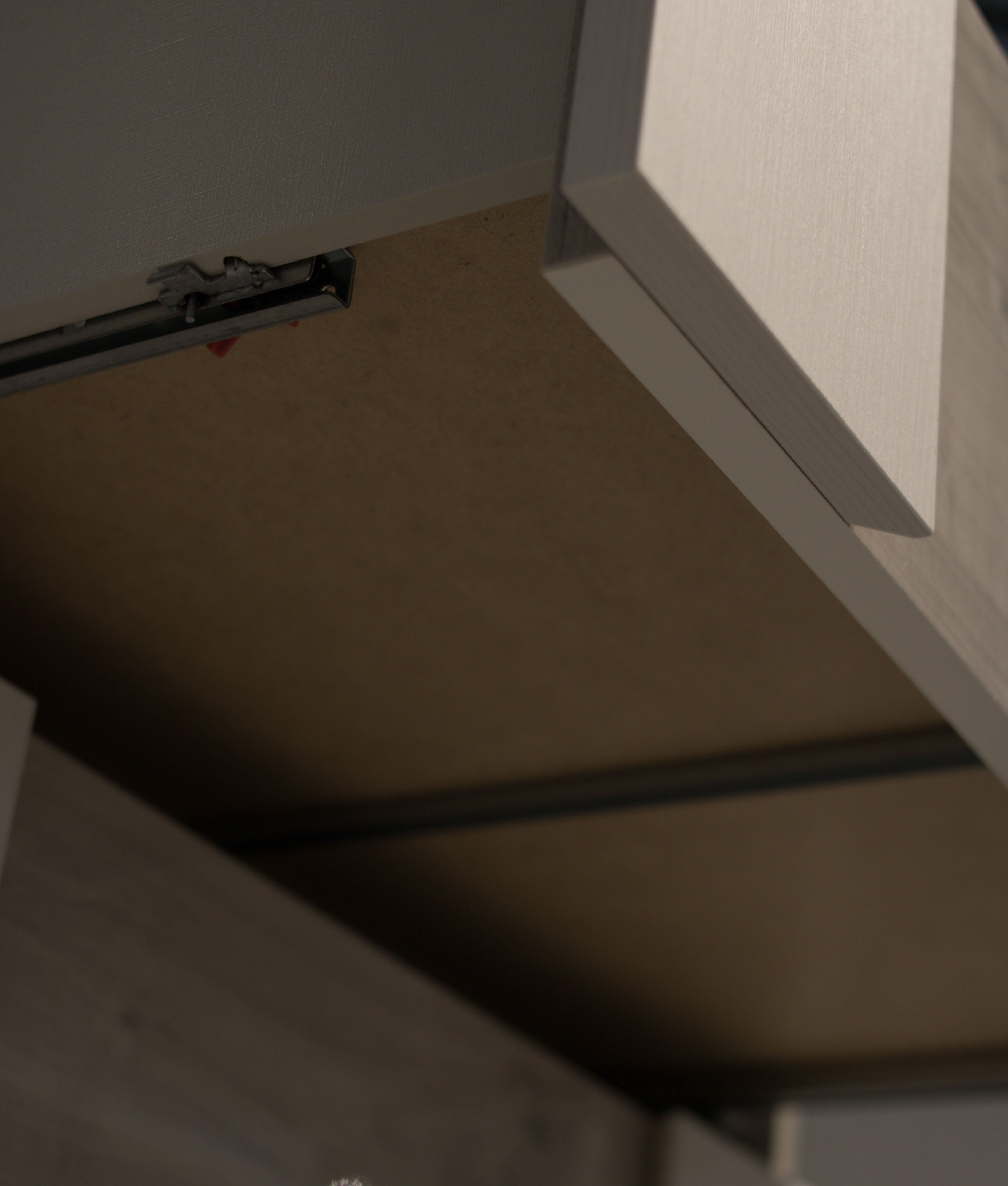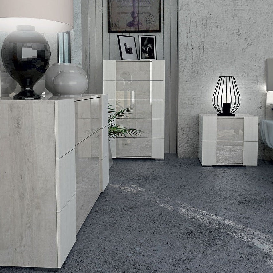 Finish: Lacquered Frosted Ash / Matte Light Grey Wood Grain / Light Grey Suede