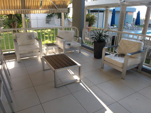 Finish: Brushed Aluminum Frame / Grey Polywood (Synthetic) Inserts