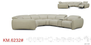 KM 6232 6pc Sectional Power Recliner w/ Power Headrest and Wireless Charger Light Grey Fabric