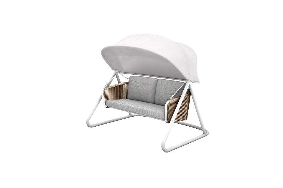 L284 Muses Swing 72"x 53"x 60" Aluminum/Nature Wicker/Cushion & Pillow Beige/White/Hanging Rope Grey