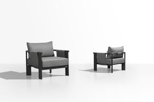 LIGO Sofa Set - 3-Seater + (2) Lounge Chairs + (2) Side Tbl + Coffee Tbl Dark Grey Aluminum