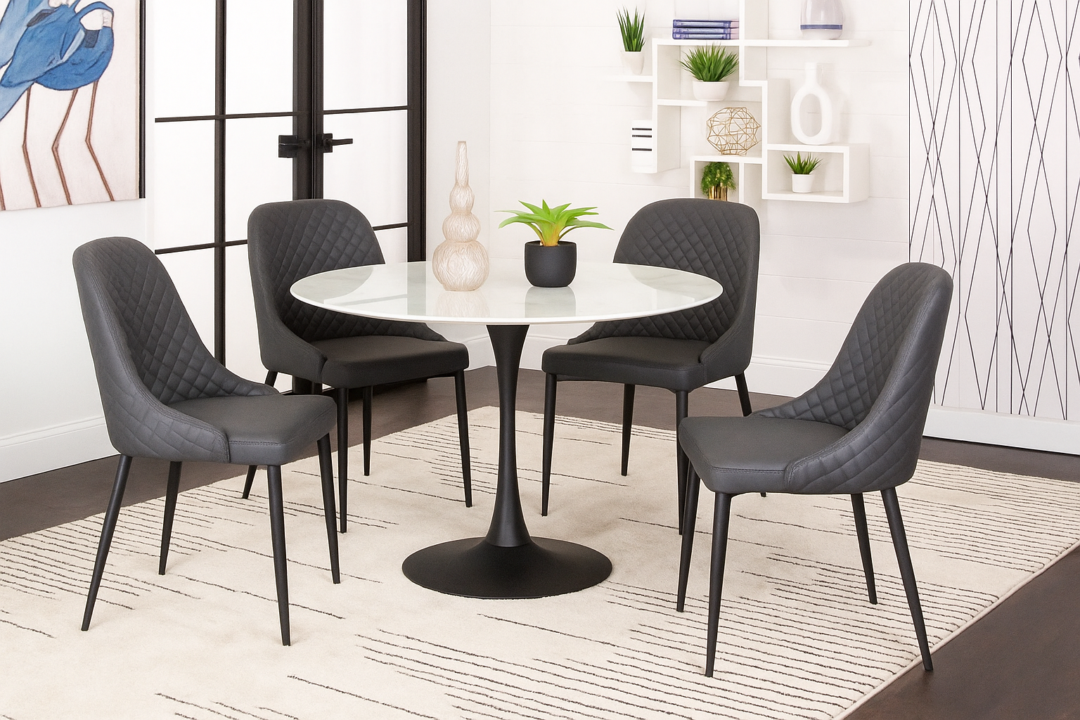 ND709-709 Dining Set - Round Dining Table + (4) ND709 Dining Chair Black PU