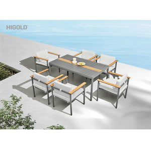 NOLA Dining Set Table 72" x 41" + (6) Dining Chairs Aluminum/Polywood