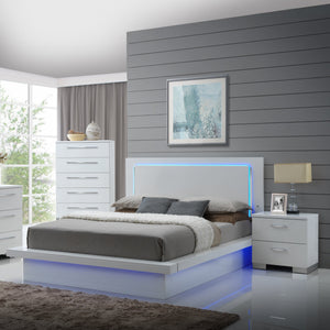 Sapphire Queen Bed + Nightstand White Laquer / LED