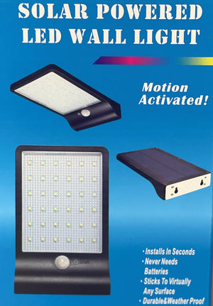 Solar Sensor's LED Wall Light that is Solar Powered and Motion Activated.