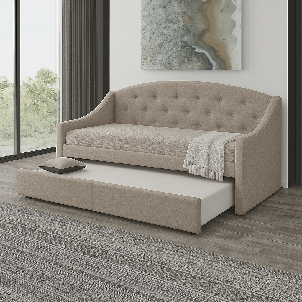 SY209 Trundle Bed FG33100-02 Light Brown Fabric
