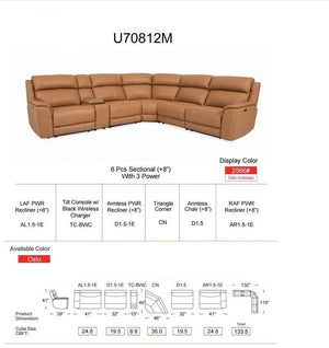 U70812 6pcs Sectional Power Recliner Set Leather Oslo Antelope
