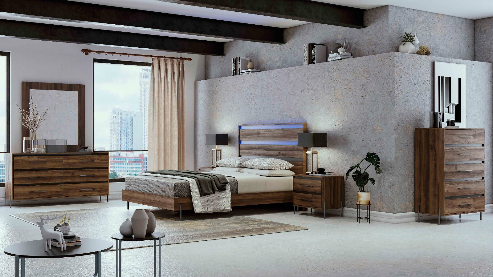 Virginia Queen Bedroom Set + Dresser + Mirror + Nightstand Walnut