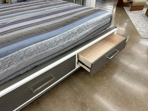 Zephyr - Queen Bed w/ 2 Drawers + Dresser + Mirror + Nightstand - White/Gray